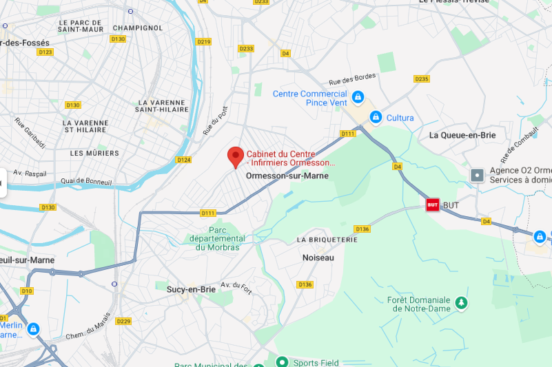 Le Cabinet du Centre est situé en plein cœur du Centre ville d’Ormesson-sur Marne : 125 Rue du Centre – 94490 Ormesson-sur-Marne